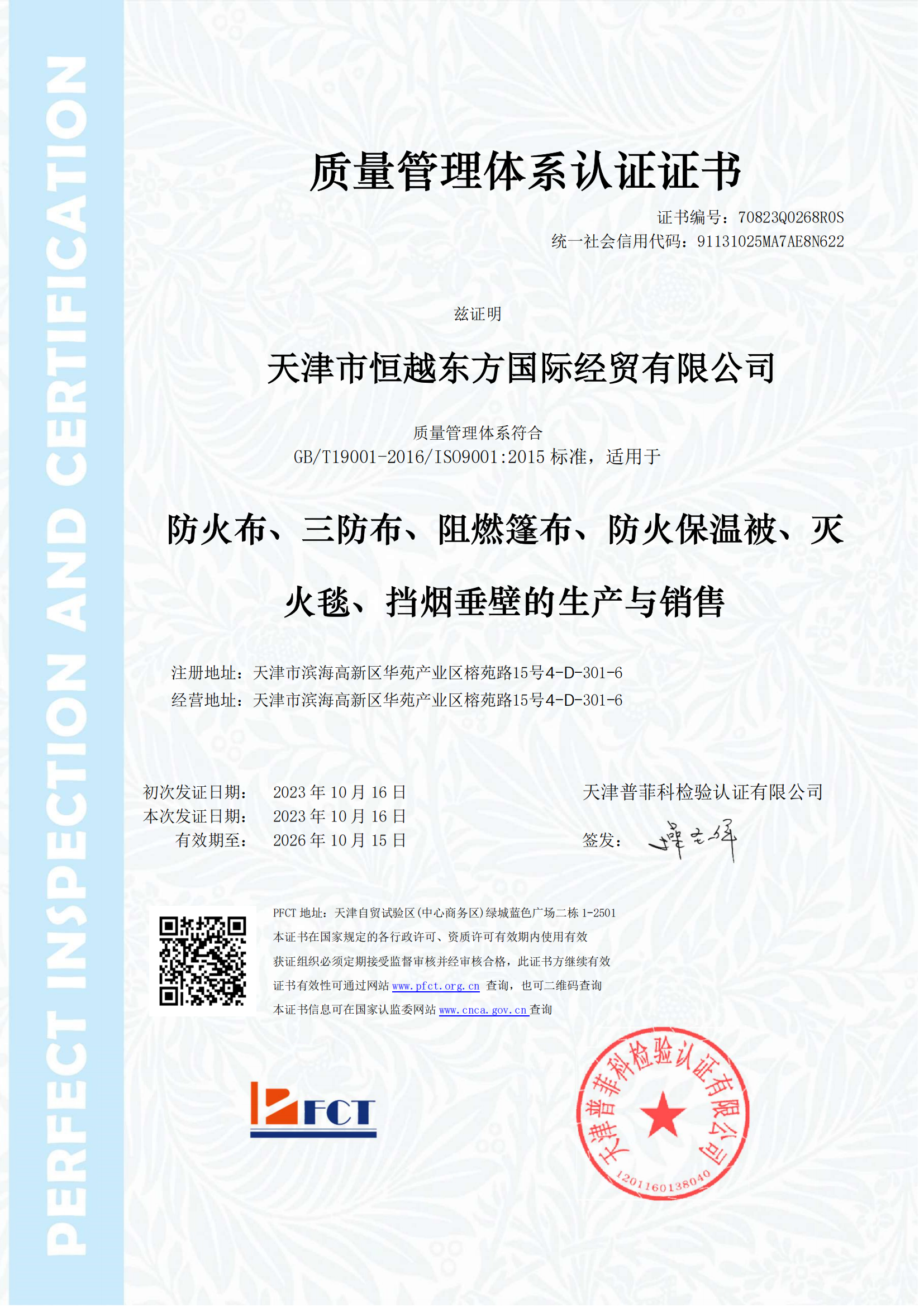 Tianjin Heng Yue Oriental International Trade & Economic Co., Ltd. is dedicated to the production of PVC tarpaulins, Fiberglass Fireproof cloth,knife - coated fabric, Mesh fabric, Fiberglass mesh cloth, fire blankets and Color Stone Coated Metal Tile. It is an industrial and trade enterprise integrating production and sales.